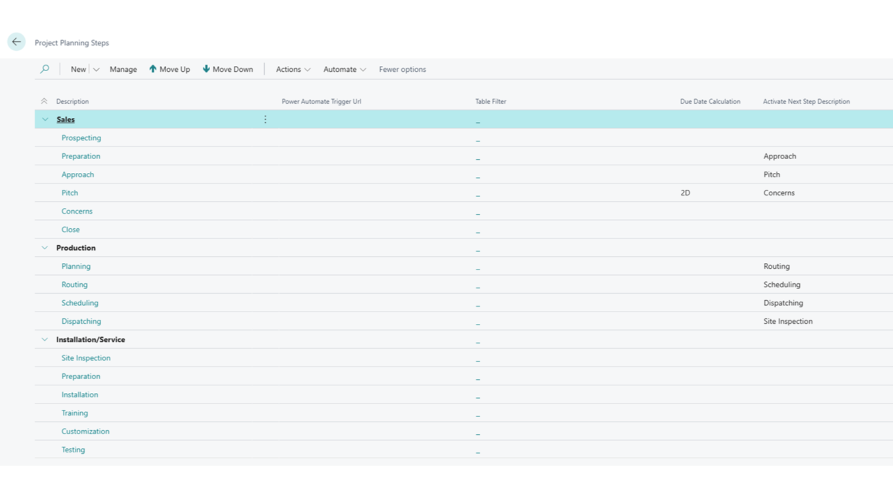 · Track progress through sales, production, and service phases automatically