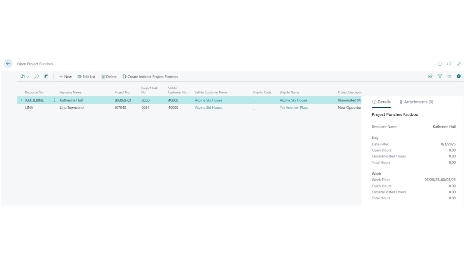 - Specify resource, project, and adjusted hours