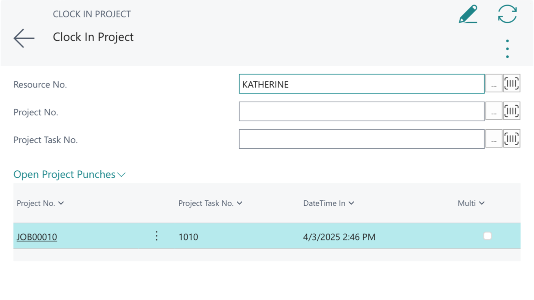 - Select “Clock In Project” or “Clock In Multiple Projects”