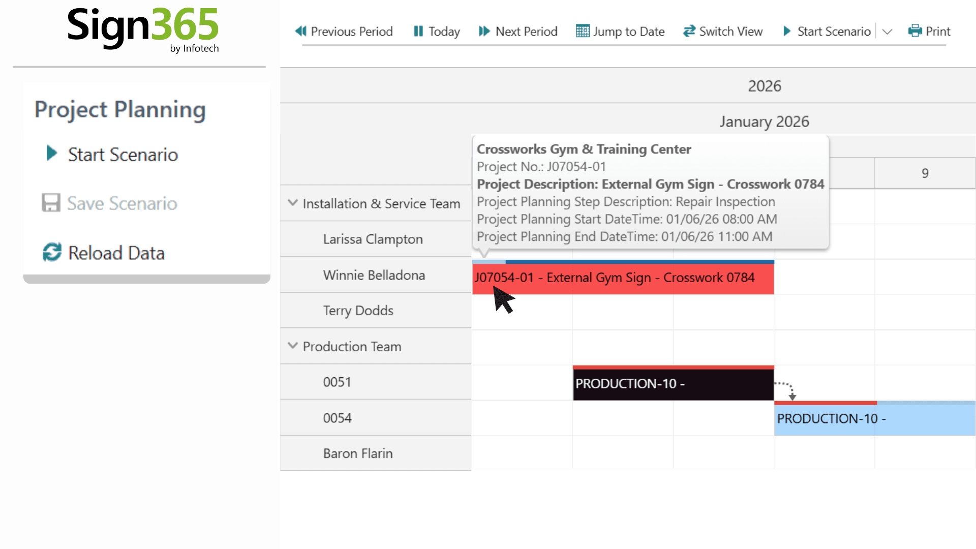 The SIGN365 Graphic Scheduler gives your team a clear, Gantt‑style view of labor, timelines, and workload—so you can spot conflicts, balance resources, and keep work moving at a glance.